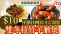 而午晚市都供應(yīng)的則有原價(jià)每只$288、現(xiàn)價(jià)$238的上湯焗西澳龍蝦(伊面);6只原價(jià)$108、現(xiàn)價(jià)$88的清蒸大連鮑魚;原價(jià)每只$198、現(xiàn)價(jià)$158的上湯焗加拿大龍蝦(伊面)等,其馀還有蒜蓉粉絲蒸元貝、頭抽煎海蝦、白灼生蝦等。優(yōu)惠僅限指定食法,并需另加一服務(wù)費(fèi),于中午11時(shí)后供應(yīng),堂食及外賣均可,六日假期價(jià)錢不同。