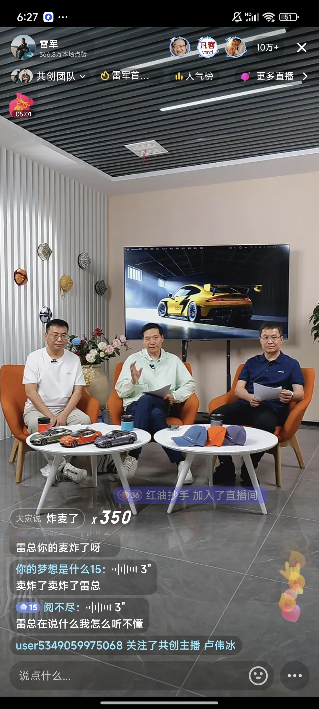直播中不時(shí)出現(xiàn)一些瑕疵,啞音、卡殼、炸麥交替出現(xiàn)。這在雷軍直播中還是首次出現(xiàn)。其中,啞音長(zhǎng)達(dá)數(shù)分鐘,嗞嗞啦啦的電音超過(guò)20分鐘,“雷總,麥炸了”的“大家說(shuō)”乘數(shù)瞬間超過(guò)1000。