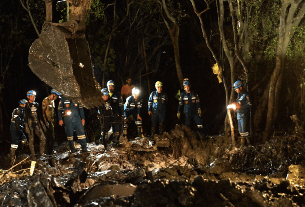 泰國(guó)當(dāng)局出動(dòng)挖泥機(jī)在墜機(jī)現(xiàn)場(chǎng)挖掘。
