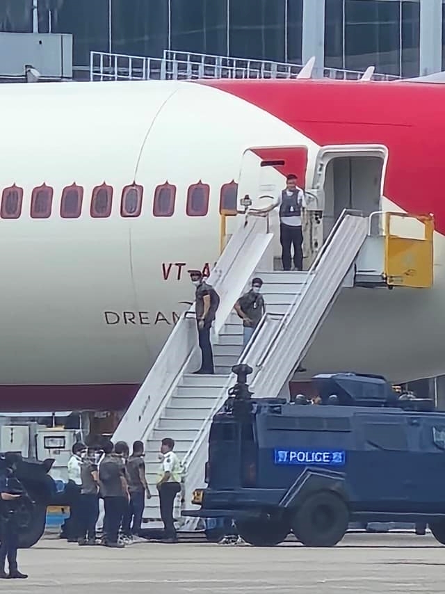 另外,根據(jù)Facebook群組“香港機(jī)場實況討論區(qū)”網(wǎng)上圖片,大批香港警員今日上午在一架印度航空客機(jī)外戒備。警員們穿防彈背心及荷槍實彈,同時亦有數(shù)部裝甲車在場,氣氛緊張。警方回覆查詢時證實,香港警務(wù)處和印度相關(guān)當(dāng)局于今日(8月22日)完成了一宗逃犯移交行動。