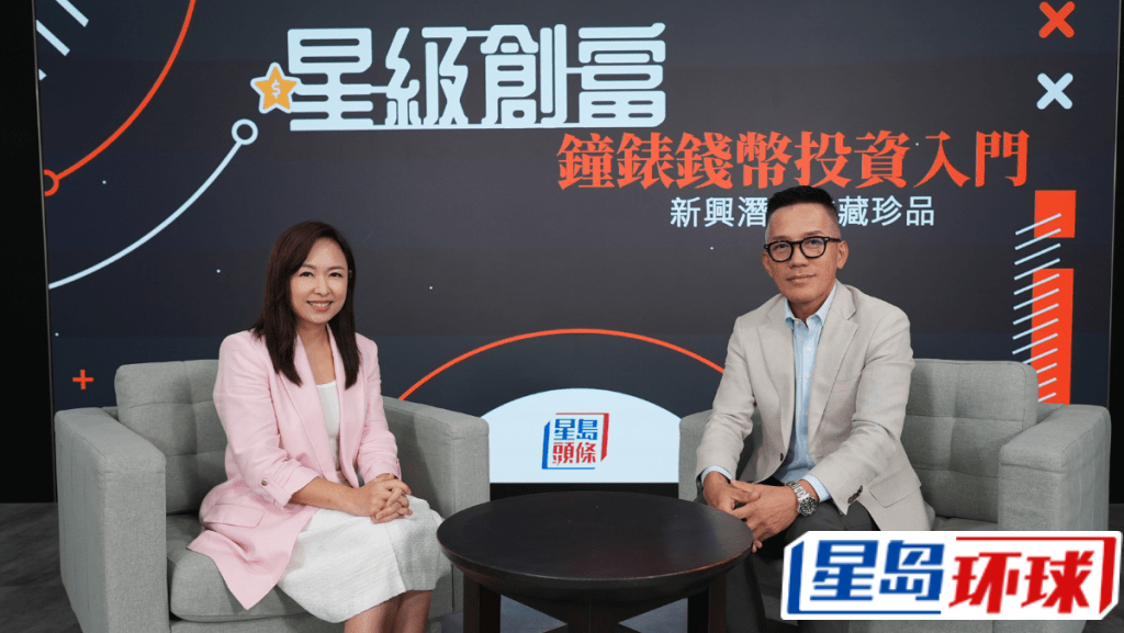▲港九押業(yè)商會理事孔慶森接受《星級創(chuàng)富》訪問,與主持林小珍對談鐘表投資入門。