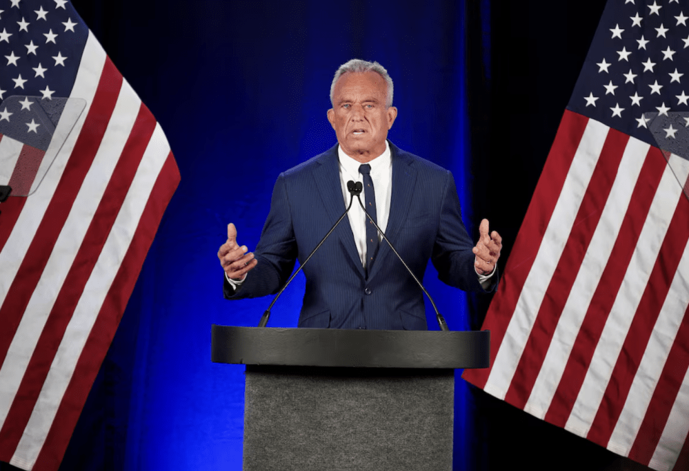 ▲美國前總統(tǒng)肯尼迪侄兒、獨立總統(tǒng)候選人小羅伯特·肯尼迪(Robert Kennedy Jr)周五宣布棄選。