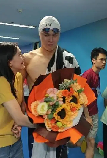 孫楊禁賽4年復出奪冠激動痛哭,妻子張豆豆現(xiàn)場送花安慰