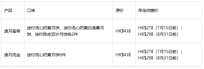 富豪酒店的迷你特色奶黃系列月餅匯聚經(jīng)典及創(chuàng)新口味,以法國牛油及頂級咸蛋黃調(diào)制出香滑的奶黃餡料,加熱后口感更是如絲般柔滑。即日起至8月31日,預(yù)購中秋月餅可享低至7折的早鳥優(yōu)惠。