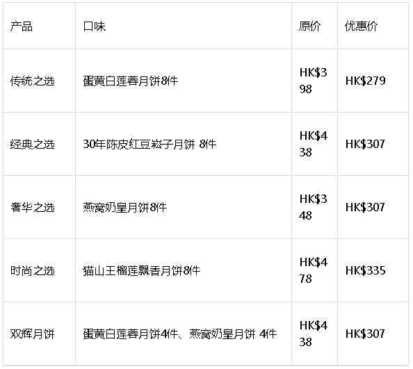 14. 榮華 傳統(tǒng)雙黃白蓮蓉月餅 網(wǎng)店優(yōu)惠低至HK$216.2