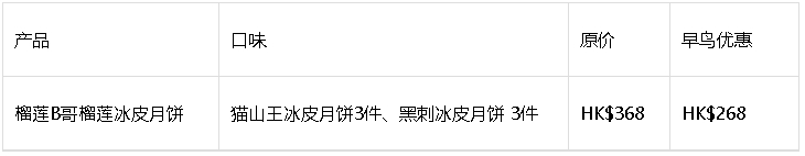 19. 港麗酒店 貓山王榴蓮月餅限量800盒 早鳥優(yōu)惠8折