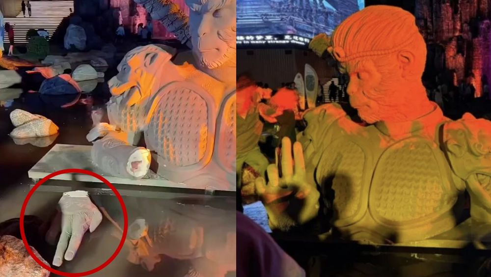 ▲山西太原景區(qū)《黑神話:悟空》雕塑被打卡游客踩爛,花3天3夜打造。
