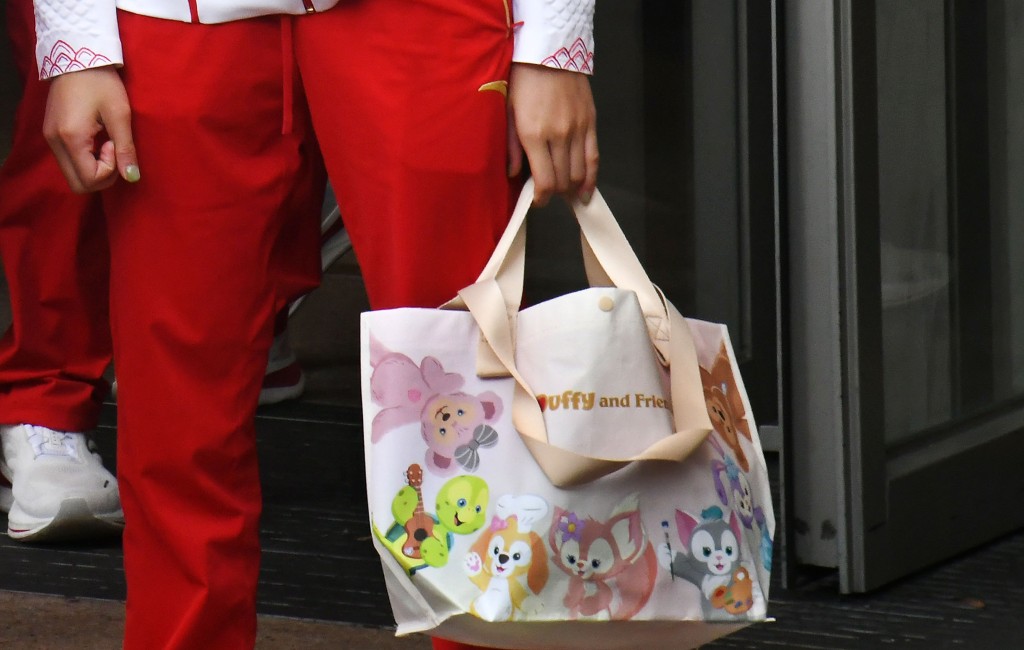 ▲全紅嬋今日改用迪士尼角色達菲熊的手提袋。