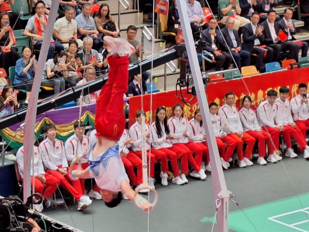 吊環(huán)銀牌得主鄒敬園指導(dǎo)中國(guó)香港年青運(yùn)動(dòng)員。