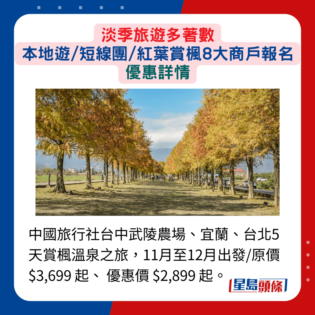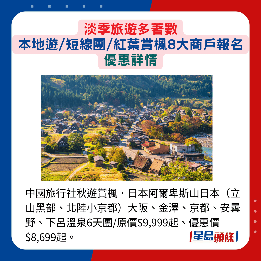 淡季旅游外地賞楓著數(shù)│ 紅葉團(tuán)  早鳥(niǎo)優(yōu)惠最多減$300