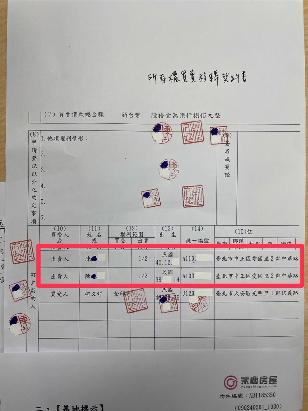 對此,民眾黨表示,該文件為“所有權(quán)買賣移轉(zhuǎn)契約書”其中一份,因此只呈現(xiàn)部分權(quán)狀買賣金額。
