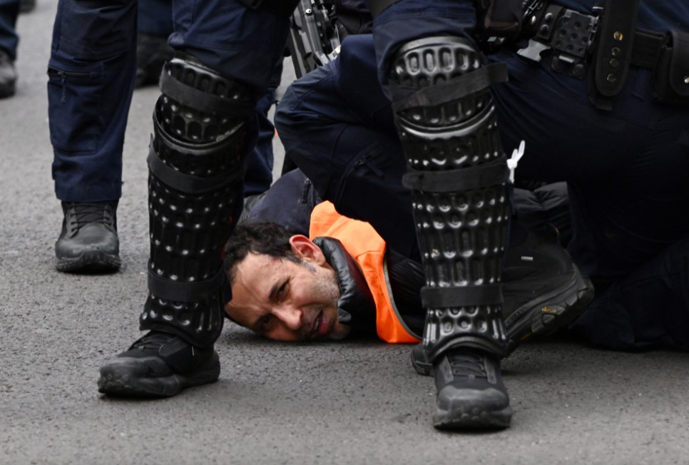 ▲警方逮捕示威者。(路透社)