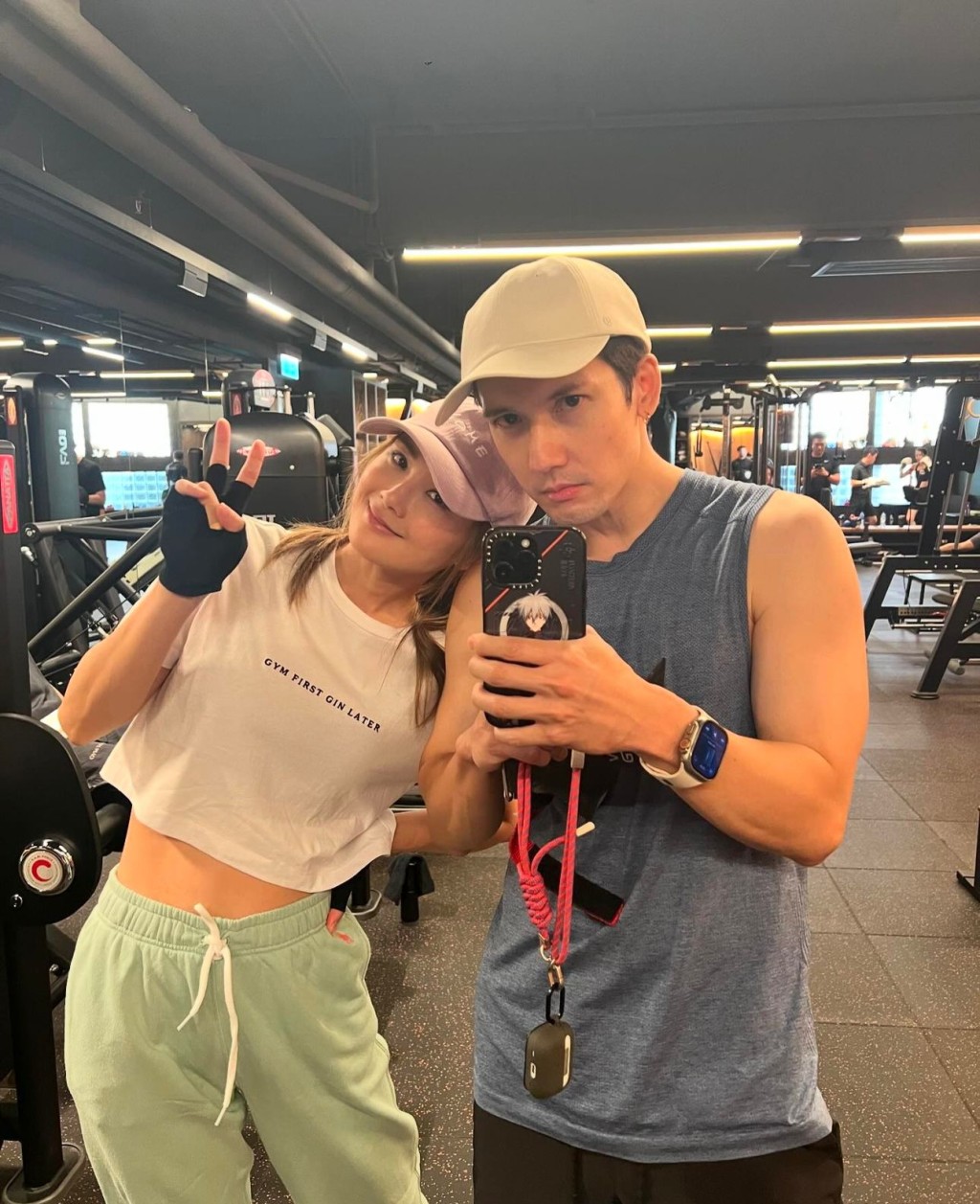 另一邊廂,關(guān)智斌亦有在其社交網(wǎng)貼出與阿Sa做gym的合照,見阿Sa以短身白色T恤上陣,露出纖腰兼馬甲線,關(guān)智斌卻自爆被對(duì)方嘲笑,他寫道:“一名男子在健身中心偶遇一位擁有馬甲線的女士本來諗住大家惺惺相惜! 然后該位擁有馬甲線的女士說:‘你呢啲系肥抑或系大只?’ 梗系大只啦,不過未練返啲線條咋嘛。” 阿Sa即留言急急澄清:“我冇mention過‘肥’或‘大只’,我系指住你個(gè)手臂話:‘咦! 好(粗)喎!’ ,你而家系自動(dòng)屏蔽咗個(gè)‘粗’字,系唔系好少聽到呢個(gè)字?” 二人的對(duì)話相當(dāng)搞笑。