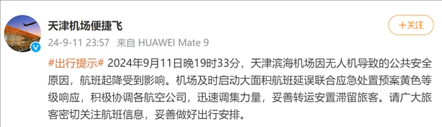 9月11日晚,天津?yàn)I海機(jī)場(chǎng)當(dāng)天從晚上7點(diǎn)40分左右開(kāi)始,所有進(jìn)出港航班停止起飛和降落。當(dāng)晚8時(shí)許開(kāi)始,陸續(xù)有網(wǎng)友發(fā)布消息稱,天津?yàn)I海機(jī)場(chǎng)出現(xiàn)航班大面積無(wú)法起降的情況,疑因機(jī)場(chǎng)受到無(wú)人機(jī)影響。