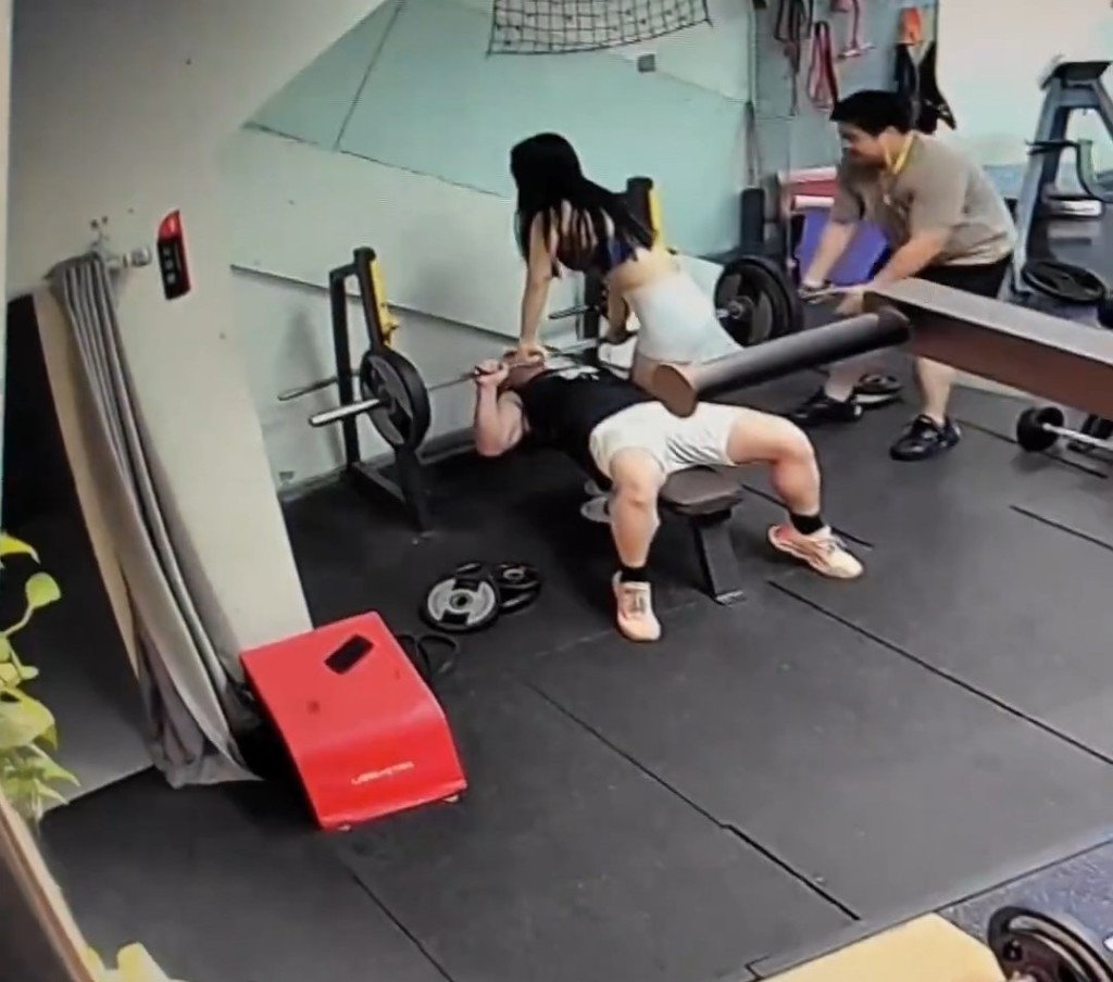 影片所見,當(dāng)時(shí)附近正有1名男子正做下拉機(jī),聽到男子求救,即時(shí)停下了查看出事情況。店內(nèi)另一閉路電視拍下的影片見,一名身穿運(yùn)動(dòng)裝的女生,聽到有人求救,即時(shí)放下手機(jī),直奔到舉杠鈴的男子。女生走到男子身旁,雙手提起杠鈴,另一男子亦尾隨,合力提起杠鈴。