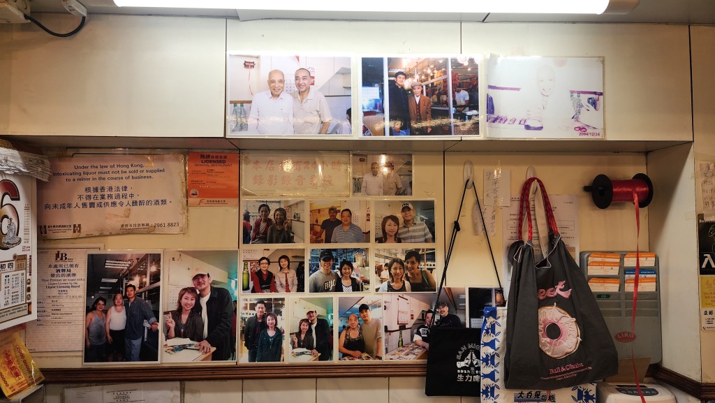 ▲店內(nèi)當(dāng)眼位置貼有東主與“發(fā)哥”周潤(rùn)發(fā)、盧海鵬、馮素波等的合照。