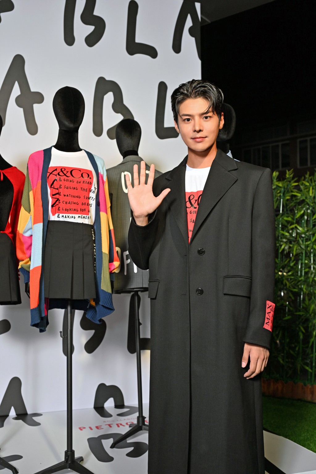 ▲韓國男星厲云身穿品牌與意大利藝術家Pietro Terzini合推的BLABLABLA系列黑色長褸配T恤。