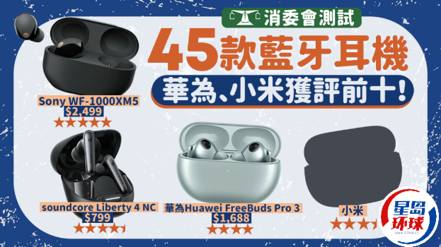 香港消委會(huì)測(cè)評(píng)45款藍(lán)牙耳機(jī),華為、小米獲評(píng)前十