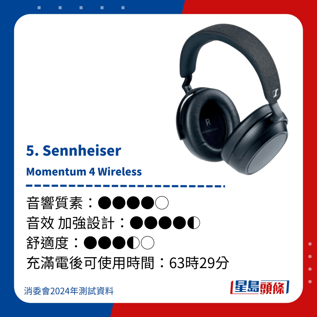 ▲5. Sennheiser Momentum 4 Wireless