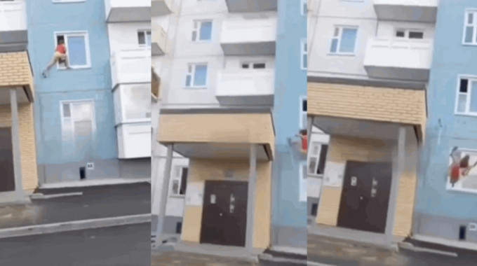 從網(wǎng)上一段長約12秒的影片所見,當(dāng)時屋外陽光燦爛,穿著紅色背心的賴索西伯利亞左腳長長的撐在外墻一條金屬支架上,右腳則踏在自家的窗邊,她向窗內(nèi)探望,但找不到可入手的地方,顯得進(jìn)退維谷,頻頻向樓下張望。