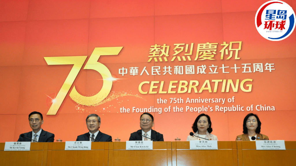 國慶75周年,香港特區(qū)政府將舉辦連串慶?;顒雍吞貏e優(yōu)惠,行政長官李家超今早(17日)出席行會前透露,全港將有逾400項(xiàng)慶?;顒樱?dāng)中包括半價睇戲、港鐵大部分路線75折、免費(fèi)搭電車及天星小輪等。政務(wù)司司長陳國基今午舉行記者會,介紹特區(qū)政府慶祝中華人民共和國成立75周年的各項(xiàng)慶?;顒雍吞貏e優(yōu)惠。政務(wù)司副司長卓永興、文化體育及旅游局局長楊潤雄、民政及青年事務(wù)局局長麥美娟和民政事務(wù)總署署長張趙凱渝出席記者會。
