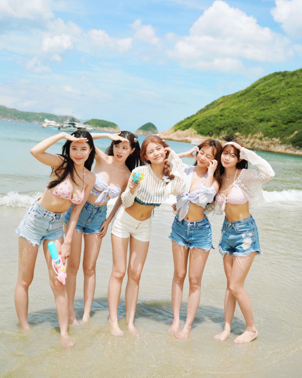 當(dāng)時倪樂琳(左一)以Stella的名字與「港版子瑜」區(qū)明妙(左二)齊齊推出水著寫真。