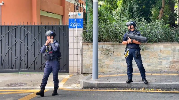 ▲事發(fā)后深圳日本人學(xué)校周邊加強(qiáng)了保安。