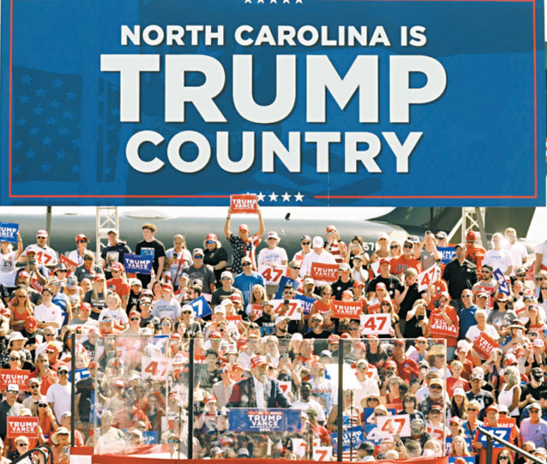 前總統(tǒng)特朗普重返北卡舉行集會,自詡比副總統(tǒng)哈里斯更能捍衛(wèi)女性權(quán)益,如果他重新執(zhí)政的話,女性甚至“不用再考慮墮胎”。與此同時,北卡共和黨籍副州長羅賓遜(Mark Robinson)因連日來陷入丑聞,這次并未在活動中亮相,特朗普對他也只字不提。