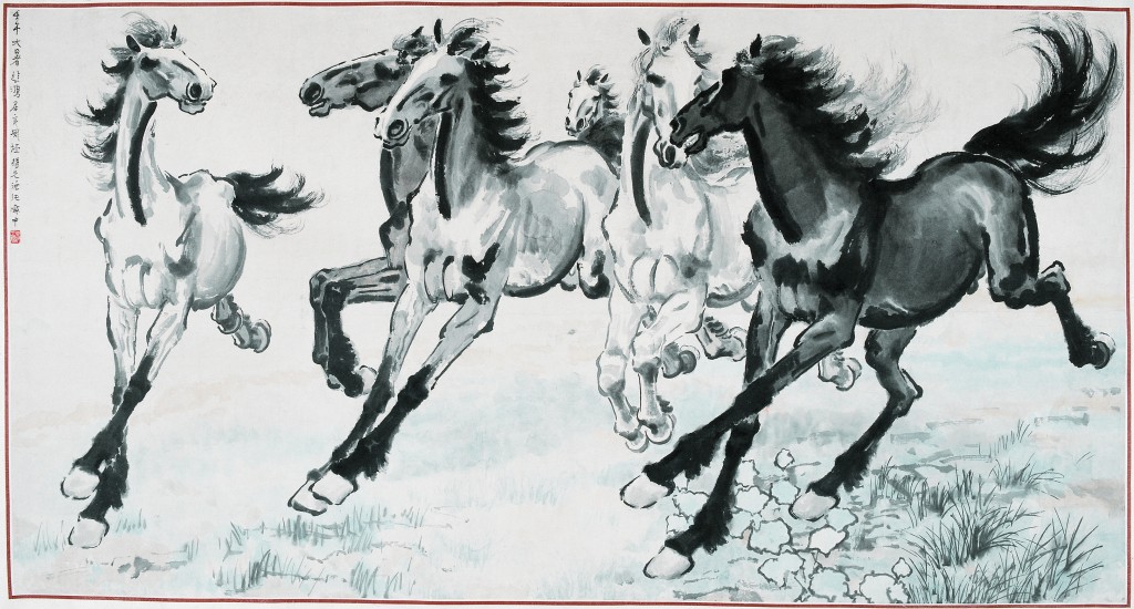 這幕呈現(xiàn)徐悲鴻先生最知名作品之一《群奔》。