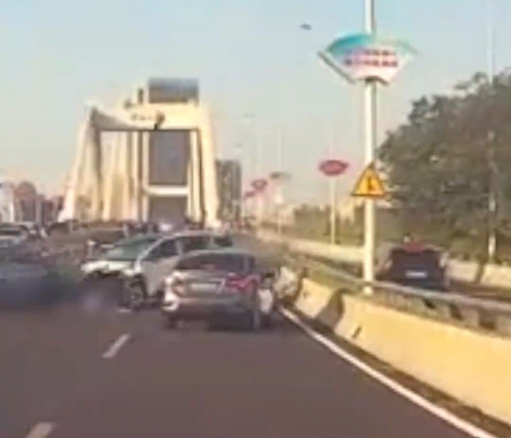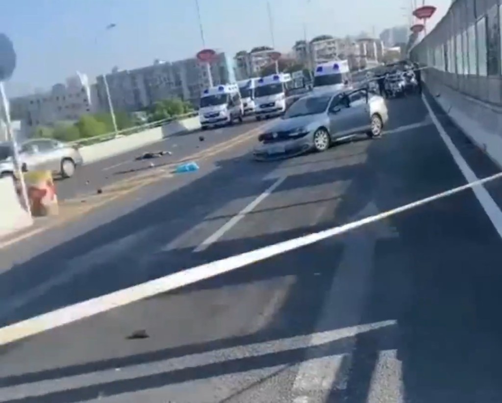 網(wǎng)上有影片顯示,一大橋上,一白色車輛從對(duì)向車道駛來(lái),逆行撞擊多輛機(jī)動(dòng)車及電動(dòng)車。事發(fā)后,多輛救護(hù)車到場(chǎng),現(xiàn)場(chǎng)交通大受影響。