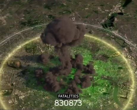 親俄羅斯總統(tǒng)普京的媒體Tsargrad(沙皇格勒),透過Telegram頻道釋出一段4分鐘的模擬影片,內(nèi)容顯示若有750噸的核武彈頭在倫敦市中心西敏寺爆炸,將產(chǎn)生半徑為950米、跟太陽一樣熱的大火球,任何在火球范圍內(nèi)的東西都會瞬間被蒸發(fā),而在爆炸半徑5公里內(nèi)的城市也都將遭受最嚴(yán)重破壞。