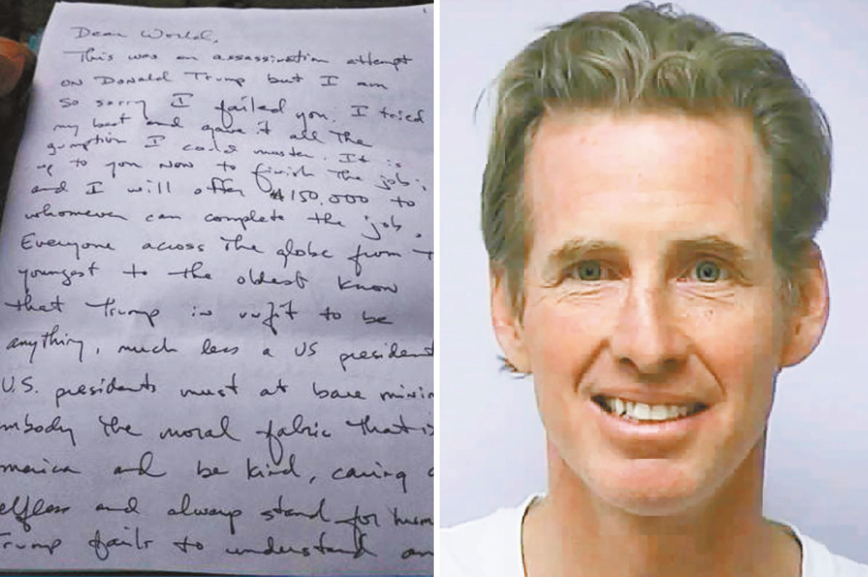 ▲檢察官指出,被捕男子勞斯一早已策劃今次行動(dòng),多月前已留下字條,顯示正計(jì)劃要暗殺特朗普。 合拼圖片