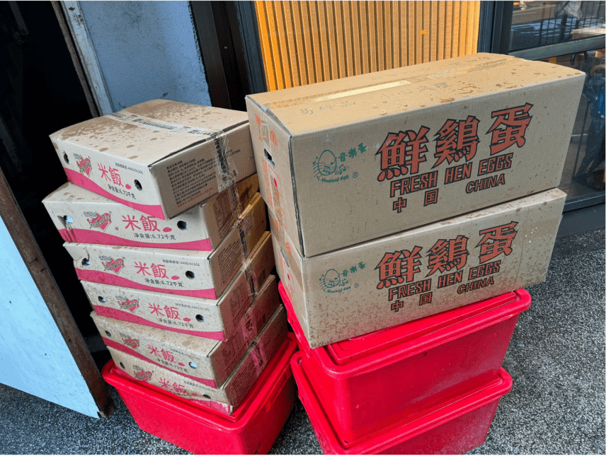 ▲有網(wǎng)民指發(fā)現(xiàn)本地某餐飲集團(tuán)的連鎖餐廳門外,擺放了6大箱內(nèi)地產(chǎn)的預(yù)制米飯。