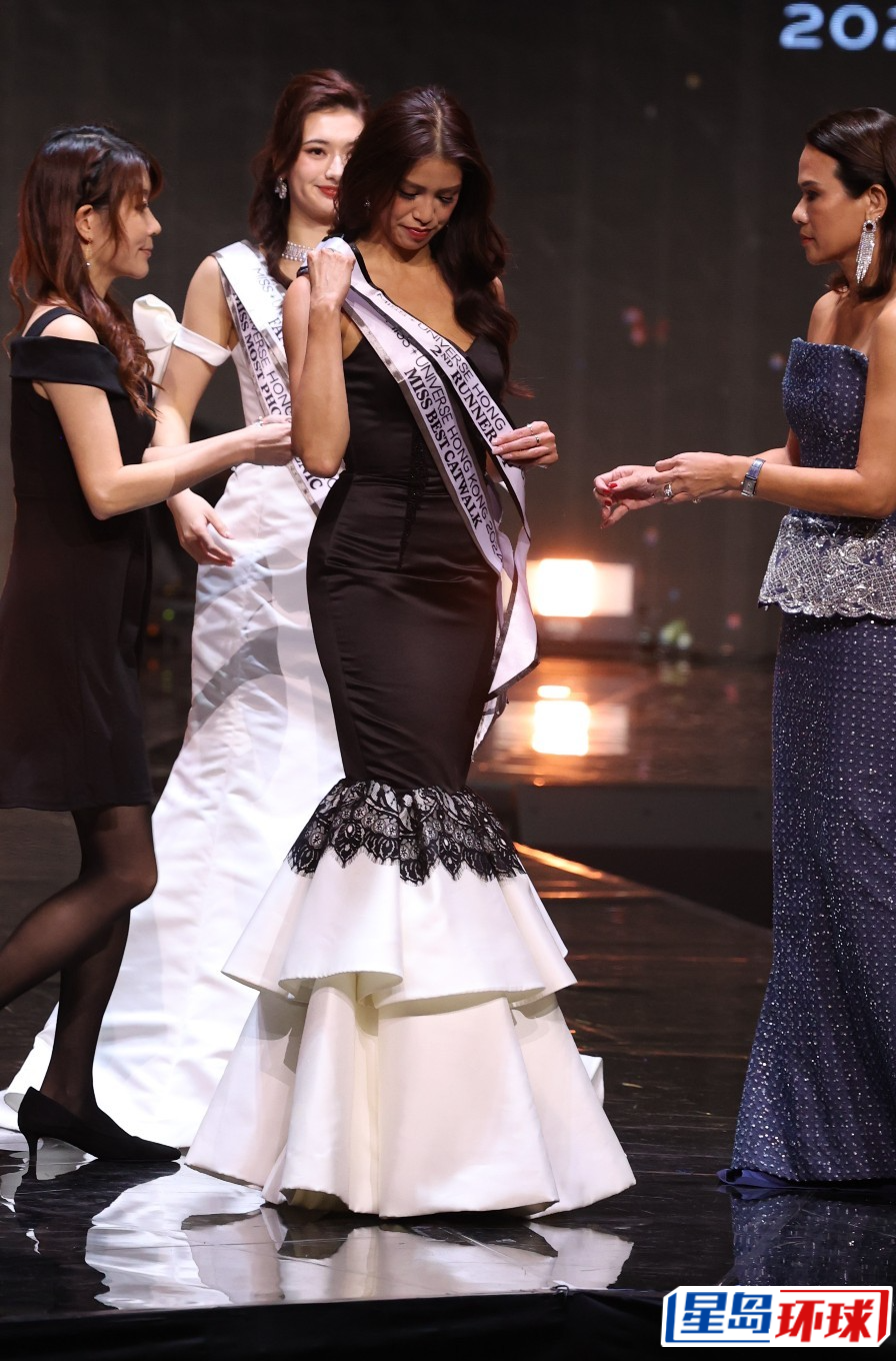 ▲賽前被受關(guān)注的前港姐雷莊兒獲季軍,似乎有些失望。