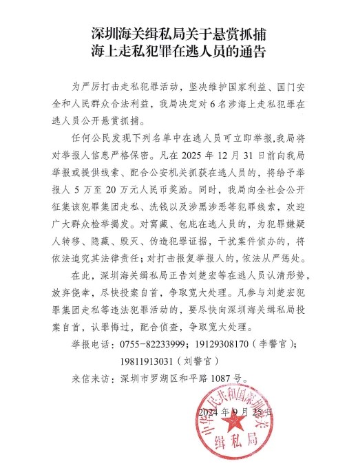 最高20萬(wàn)元?| 深圳懸賞抓捕6名涉海上走私犯,包括兩名港人