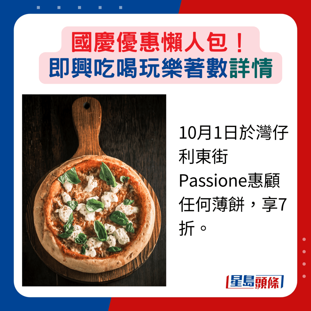 ▲10月1日于灣仔利東街Passione惠顧任何薄餅,享7折。
