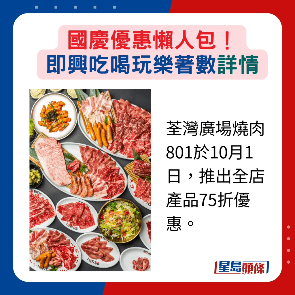 荃灣廣場燒肉801于10月1日,推出全店產(chǎn)品75折優(yōu)惠。