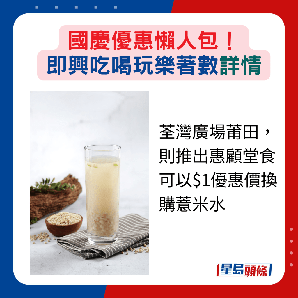 于荃灣廣場莆田,則推出惠顧堂食可$1優(yōu)惠價換購薏米水