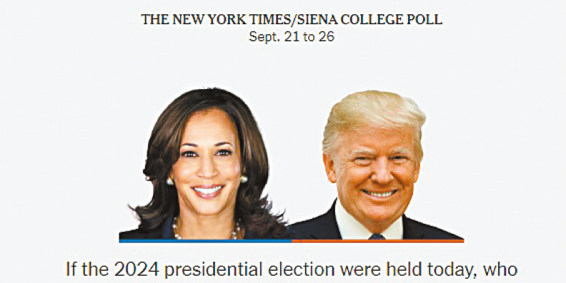《紐約時(shí)報(bào)》與錫耶納學(xué)院聯(lián)合調(diào)查發(fā)現(xiàn),哈里斯在密州支持度領(lǐng)先特朗普1個(gè)百分點(diǎn)。 紐約時(shí)報(bào)