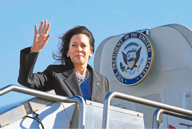 哈里斯周六下午登上空軍二號(hào)離開(kāi)舊金山。美聯(lián)社