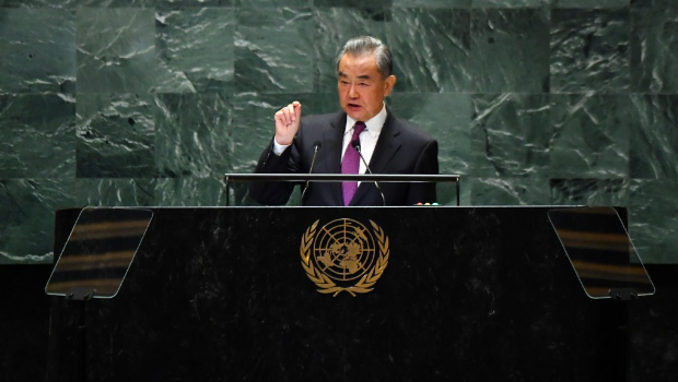 ▲外交部長王毅28日在紐約聯(lián)合國總部發(fā)表演講。新華社