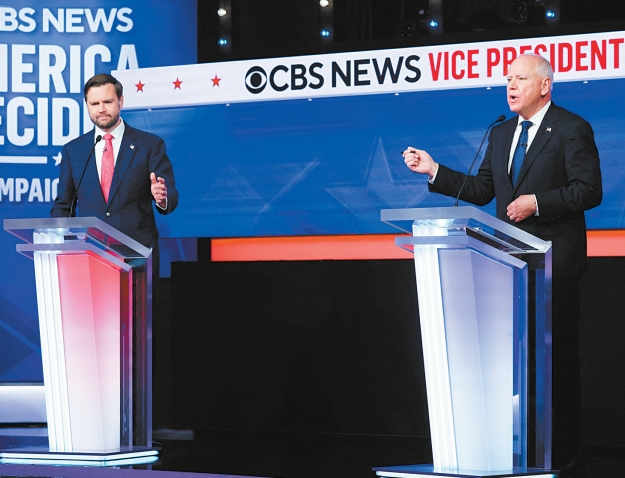 民主黨副總統(tǒng)候選人沃爾茲(Tim Walz)與共和黨提名人萬(wàn)斯(JDVance)舉行唯一一場(chǎng)辯論,兩人除了環(huán)繞外交、能源、移民、墮胎和國(guó)會(huì)騷亂等議題激辯之外,也把焦點(diǎn)指向彼此的競(jìng)選搭檔,質(zhì)疑對(duì)方并非理想的治國(guó)人選。雖然辯論本身非常激烈,但兩人表現(xiàn)克制,沒(méi)有進(jìn)行人身攻擊。