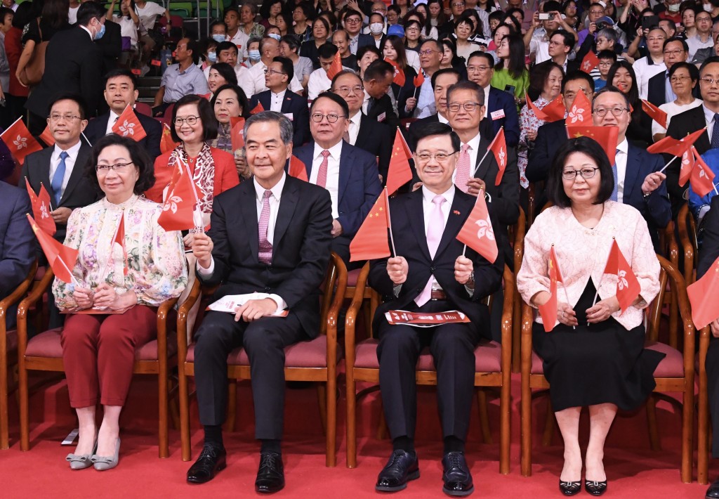 特首李家超伉儷及前特首梁振英伉儷出席晚會。 何君健攝