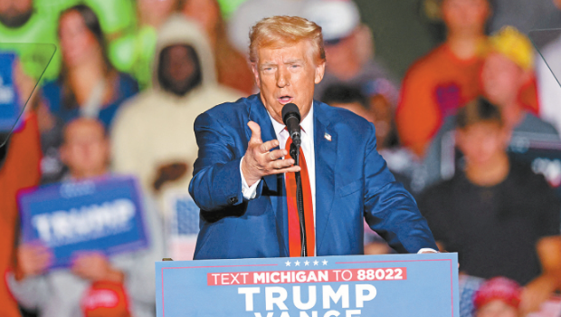▲特朗普表示若再入主白宮,將取消現(xiàn)行的“臨時保護身分”計劃,并遞解海地移民出境。圖片為他在密州薩吉諾的集會上發(fā)表演說。路透社