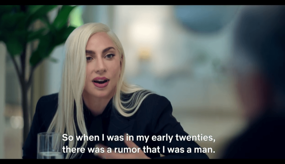 Lady Gaga一向風(fēng)格偏鋒,造型奇特多變,更亦公開接受同志文化。網(wǎng)絡(luò)多年來一直流傳Lady Gaga為變性人(跨性別人士),網(wǎng)上甚至流傳其男性形象照片,同時亦有傳Lady Gaga是雌雄同體的雙性人。一直未有未公開回應(yīng)與否認有關(guān)傳聞的Lady Gaga,近日于Netflix紀(jì)錄片《下一步?與比爾蓋茨探索未來》(What's Next?The Future with Bill Gates),首次公開回應(yīng)該傳聞。