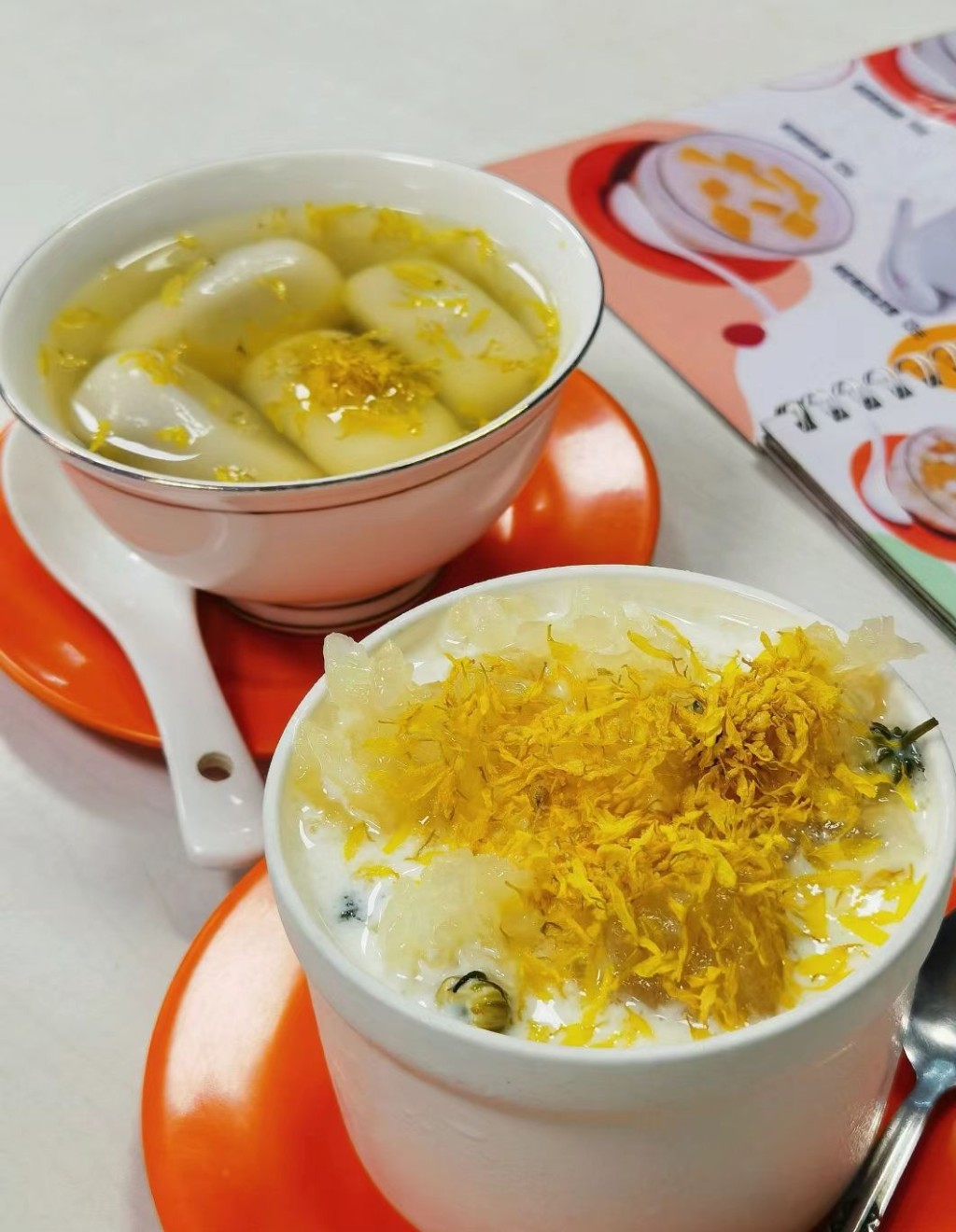 甜苑冰室是小欖老字號(hào)糖水店,小欖又稱菊城,就連街坊糖水店也來(lái)響應(yīng)菊花美食,出品有菊花水欖,水欖是小欖特色小吃,類似湯圓,口感軟糯,豆沙餡料,加入菊花熬制的糖水味道清香。菊花雙皮奶,香甜滑溜,滋潤(rùn)養(yǎng)顏,女士至愛(ài)。大家到小欖,不妨發(fā)掘傳統(tǒng)新吃的打卡美食。