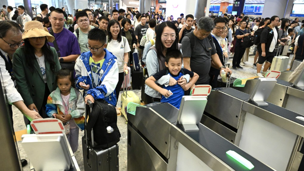 ▲國慶黃金周踏入最后一日,西九龍高鐵站有不少游客離港。