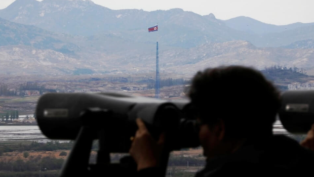 朝鮮國(guó)旗于非軍事區(qū)高塔上之照片。