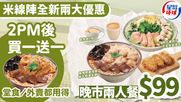 米線陣優(yōu)惠|全新湯底米線2pm后買(mǎi)一送一,$99晚市兩人餐連小食+飲品 堂食/外賣(mài)適用