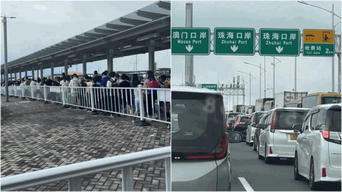 有排隊(duì)等候金巴的網(wǎng)民表示,等候的人較多過程暢順,巴士較多,不用等多久便可上車,亦有自駕游經(jīng)港珠澳大橋北上的巿民表示,“3km 拉手掣,勁塞車”。